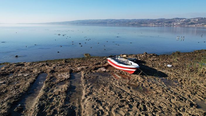 Sakarya ve Kocaeli'de milyonlarca vatandaşın içme su ihtiyacını karşılayan Sapanca Gölü'nde tehlike çanları çalıyor. Son 5 yılın en düşük seviyesine ulaşan gölde kayıkların karaya oturduğu alanlar havadan da görüntülendi.