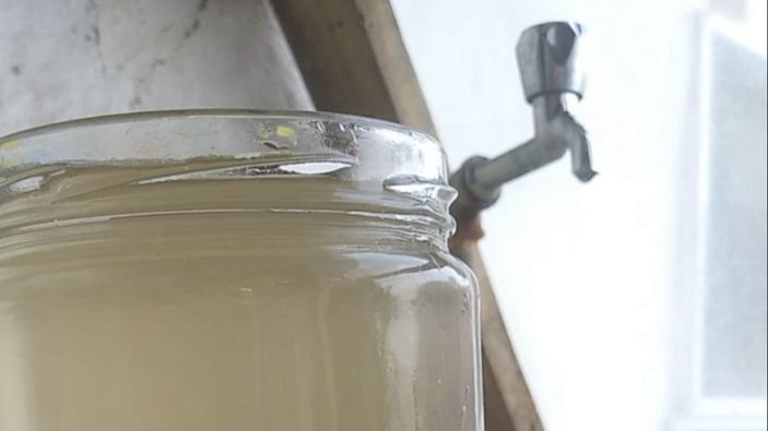 Musluktan su almak isteyen bir vatandaş yaklaşık 10 kova su doldurmasına rağmen kirli su bitmek nedir bilmedi. Duruma isyan eden vatandaşlar, "Limonata değil çeşme suyu." dedi.