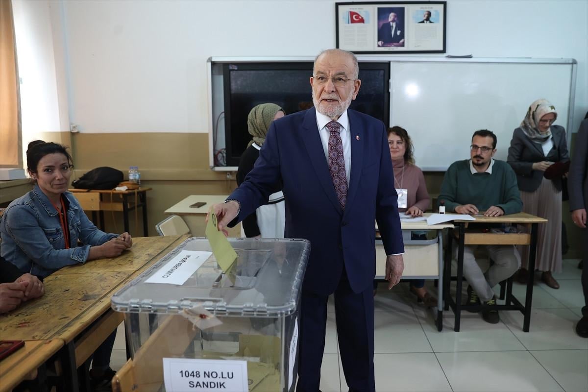 Saadet Partisi Genel Başkanı Temel Karamollaoğlu, eşi Ayşe Yasemin Karamollaoğlu ile birlikte Ankara Çankaya Lisesi'nde oyunu kullandı.