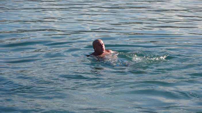 Çevreden bizi görenler şaşırıp hayretle bakıyor. Deniz suyu 8-10 derece dolaylarında dolayısıyla hava güneşli oldukça denize girmeye devam." dedi.