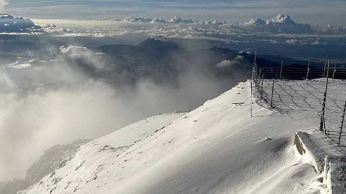TELEFERİKLE ZİRVEYE ÇIKANLAR KAR SÜRPRİZİ YAŞADI