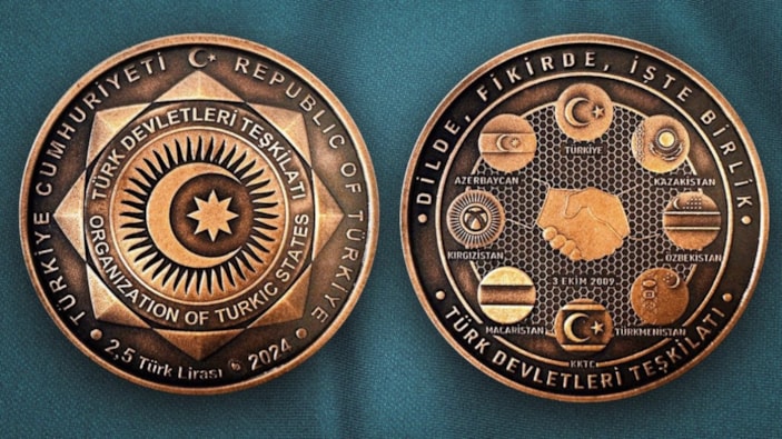 Türk Devletleri Teşkilatı 11. Devlet ve Hükümet Başkanları Zirvesi için özel olarak hazırlanan hatıra para, Türk devletleri arasındaki köklü bağları ve iş birliğini simgeleyen zengin detaylarla tasarlandı.