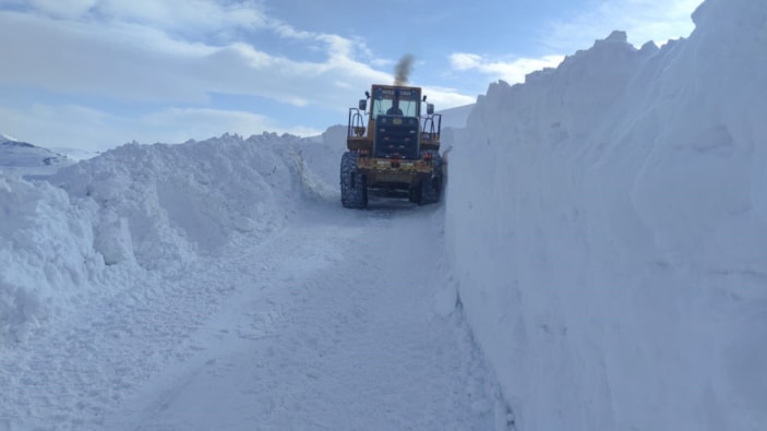 Zor şartlarda çalışan karla mücadele ekipleri, yer yer kar kalınlığının 3 metreyi bulduğu bölgede kar savurma araçlarıyla yolları ulaşıma açıyor.