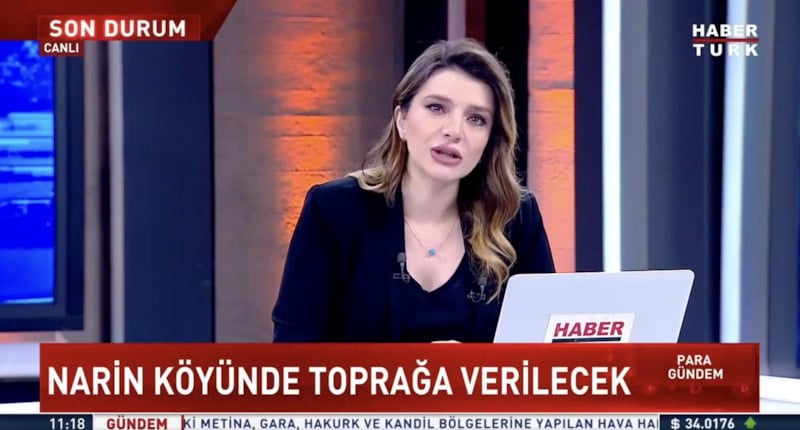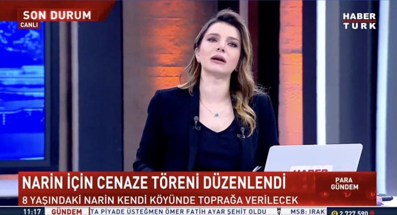 Dün Diyarbakır'da cansız bedeni bulunan Narin Güran'ın cenaze töreni haberini sunan Habertürk sunucusu Sena Alkan, gözyaşlarına hakim olamadı.