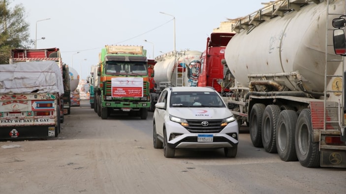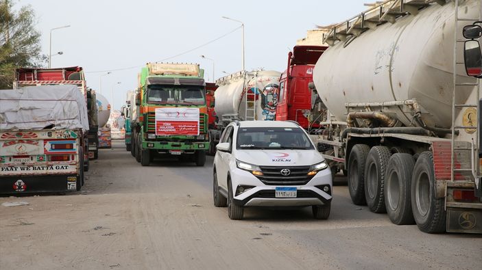 Gazze Şeridi'ne en çok insani yardım ulaştıran ülkelerden biri olan Türkiye'den gönderilen 9. İyilik Gemisi'ndeki 3 bin 774 ton insani yardım malzemesinin ilk kısmını taşıyan tırlar Mısır’dan Gazze'ye hareket etti.