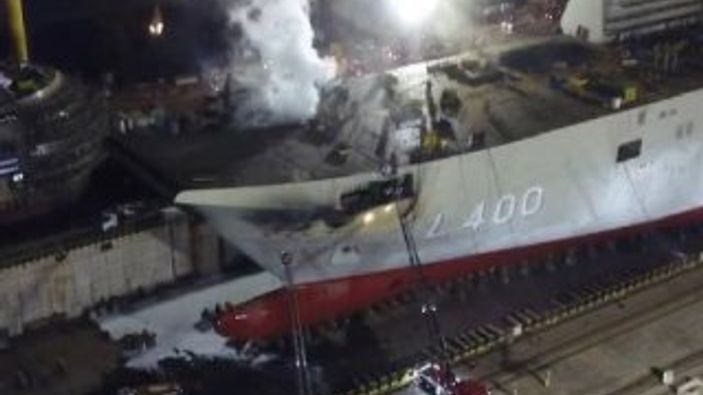 Türkiye'nin ilk ve tek uçak gemisi TCG Anadolu L-400'de çıkan yangın kontrol altına alındı.