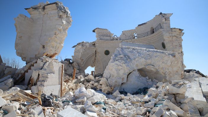 Depremin büyük yıkıma neden olduğu Nurdağı'nda bulunan Ukkaşe Hazretleri türbesinin, restore edilen bölümleri yıkıldı.
