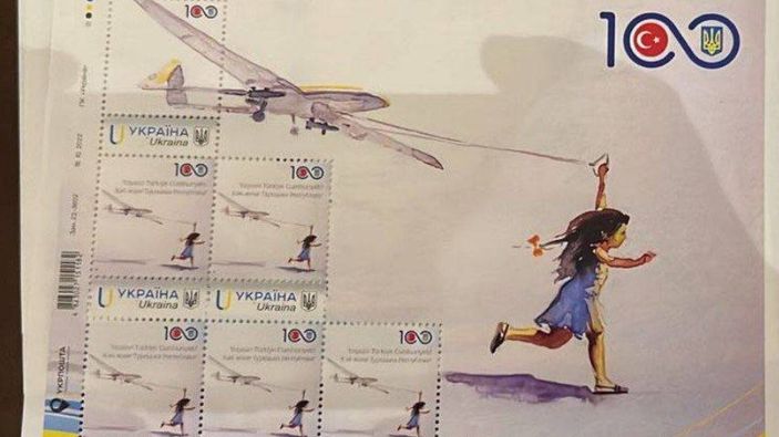 Türkiye'nin 100. yılını kutlayan Ukrayna Hükümeti ise BayraktarTB2'nin yer aldığı hatıra pulu bastırdı.
