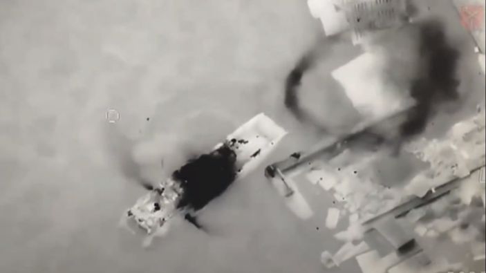 Yılan Adası'na demir atan Rus gemisini hedef alan Ukrayna ordusu, silahlı insansız hava aracı ile gemiyi yerle bir etti.