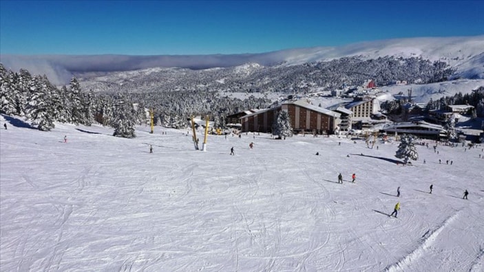 Türkiye'nin ilk kayak merkezi olan ve 'Beyaz cennet' olarak tanımlanan, kış aylarında 2 ayrı bölgede bulunan 5 bin yatak kapasitesine sahip 17 otelle kayakseverleri ağırlayan Uludağ'a, hava sıcaklıklarının mevsim normallerinin üzerinde seyretmesi nedeniyle beklenen kar yağışı düşmedi.