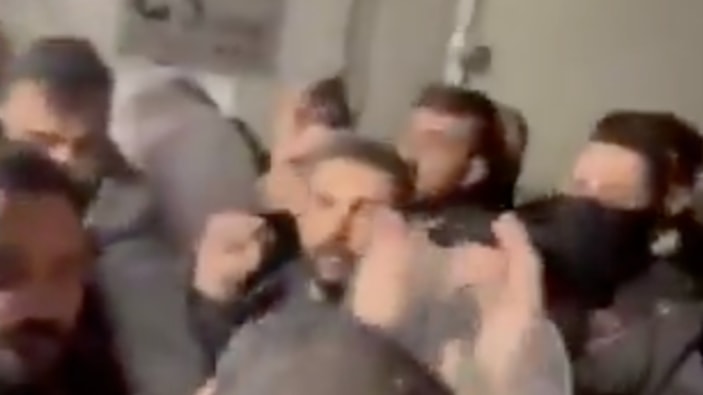 Bununla kalmayan partililer, "adi, "şerefsiz" ve "köpekler" diyerek polise hakaretler yağdırdı.