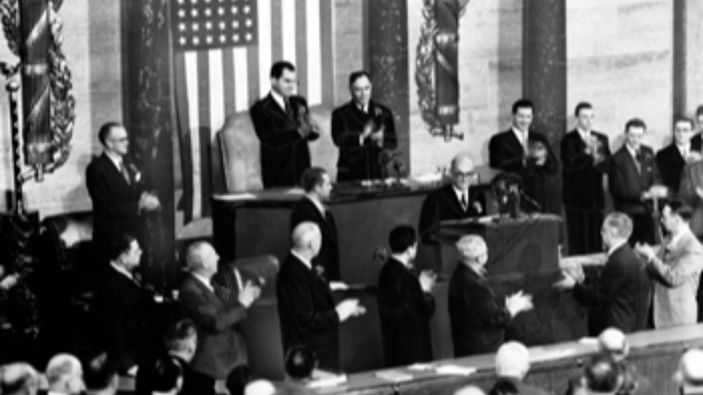Soğuk savaş dönemi olarak adlandırılan bu periyotta Sovyet tehdidini yakından hisseden Türkiye de Batı blokunun yanında yer alır. Sovyet tehdidini çok yakınında hisseden Türkiye ile Sovyet yayılmacılığına karşı mücadeleyi misyon edinen Amerika arasında hızla gelişen ilişkiler, bu dönemde stratejik ortaklığa dönüşecektir. Ağustos 1946 yılında 'Amerikan Havacılığı'nın kuruluşunun 39. yıl dönümünde coşkulu bir tören yapılır ve bu olay dostluğun gelişmesinde önemli bir adım olur. Rusya’nın Boğazlar üzerindeki taleplerini açıktan açığa dillendirmeye başlaması üzerine Amerika’nın 'Franklin D.Roosevelt' uçak gemisini Akdeniz’e göndermesi, iki devlet arasındaki ilişkileri güçlendirir. Türkiye ile ABD, Sovyet tehdidi karşısında birbirlerine daha çok yaklaşır ve bu durum aradaki dostluk ilişkilerini iyice geliştirir. Bu süreçte ABD, Truman Doktrini’ni ilan ederek Sovyetler Birliğini 'Çevreleme Politikası' izlemeye başlar. Bu politika uyarınca Sovyet tehdidini hisseden, içinde Türkiye’nin de olduğu bütün devletlere yardımlar yapar. Bu yardımın ekonomik ayağını oluşturmak için Marshall Planı adı verilen 'Avrupa Kalkınma Projesi' başlatılır. Projeye Avrupa ülkelerinin yanı sıra 16 Doğu Avrupa ülkesi ile Rusya davet edilir. Ancak Rusya ile birlikte hareket eden 16 Doğu Avrupa ülkesi bu davete katılmayı reddederek ABD’ye karşı açıkça tepkilerini ortaya koyarlar.