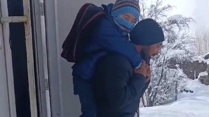 Van'da bir öğretmen öğrencisini sırtında taşıyarak evine bıraktı