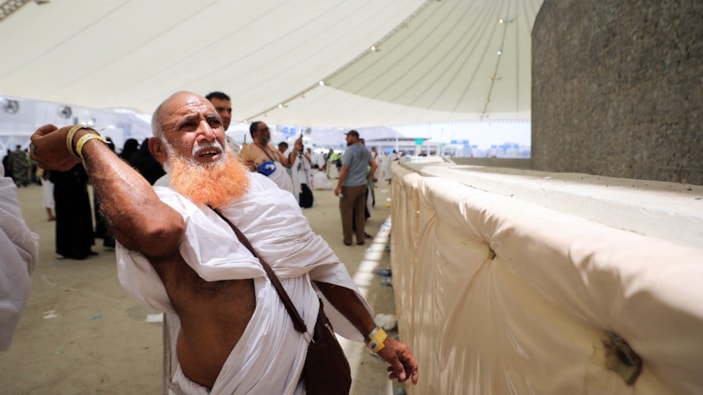 Hac ibadeti için kutsal topraklarda bulunan hacı adayları Kurban Bayramı'nın ilk gününde Mina'da şeytan taşlama ibadetini yerine getirdi.