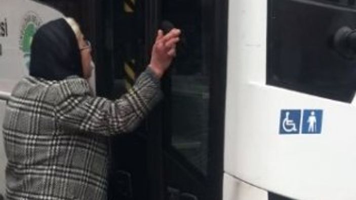 Emekli öğretmen olduğu öğrenilen 70 yaşlarındaki bir kadın, yasağa rağmen halk otobüsüne binmekte direndi.