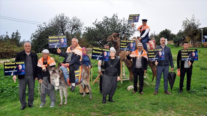İlk Türk astronot Alper Gezeravcı'nın uzay yolculuğu heyecanı memleketi Silifke ilçesinde de yaşanıyor. Bir araya gelen bölge halkı, "Yörük çocuğu uzaya gidiyor" yazılı dövizle destek verdi.
