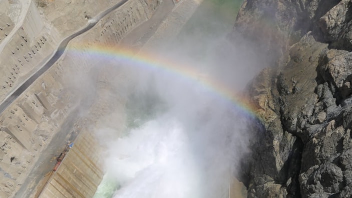 Yusufeli Barajı'nın kapaklarının açılmasıyla gökkuşağı çıktı