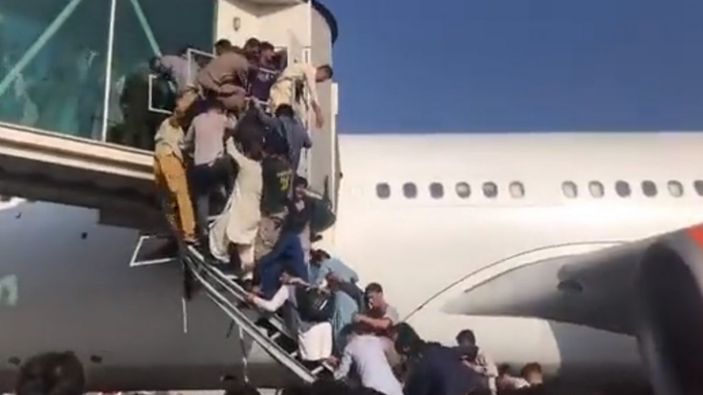 Havalimanını dolduran yüzlerce Afgan, uçağa binebilmek için birbirini ezdi.
