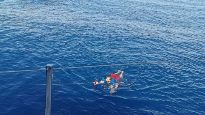 Yüzmekten bitkin düşen mülteci son anda kurtarıldı