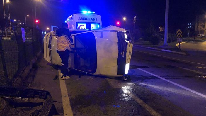 Alkollü olduğu söylenen sürücü A.K. aracıyla kavşaktan hızlı dönerken direksiyon hakimiyetini kaybederek aracıyla yan yattı.