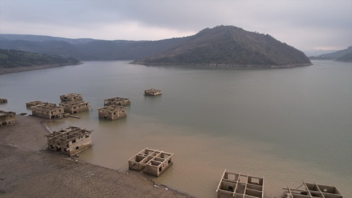 Zonguldak'ta Kızılcapınar Barajı'nda suyun azalmasıyla köy ortaya çıktı