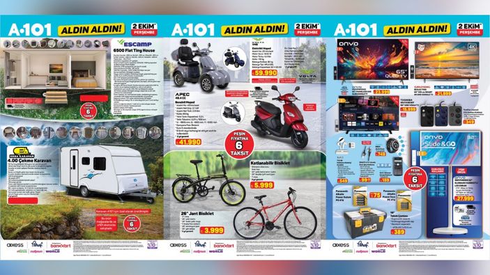A101, alışveriş tutkunlarını şaşırtmaya devam ediyor. Market zincirinin 2 Ekim 2025 aktüel kataloğunda bu kez ev eşyalarının yanı sıra, tatil ve yaşam alanı arayanlara hitap eden özel ürünler yer alıyor. İşte A101 2 Ekim aktüel katalog…