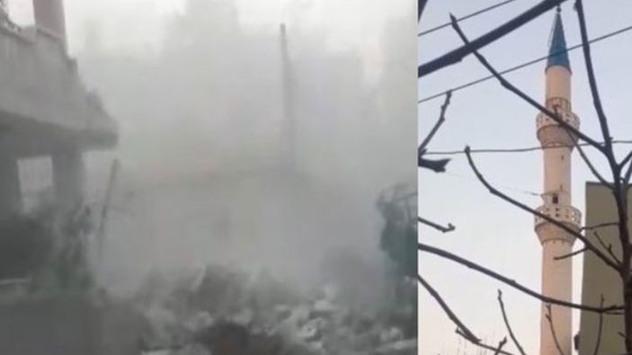 Bunun üzerine kontrollü yıkımı gerçekleştirilen caminin minaresi 3 katlı binanın üzerine devrildi. Evin balkonunda hasar meydana geldi.