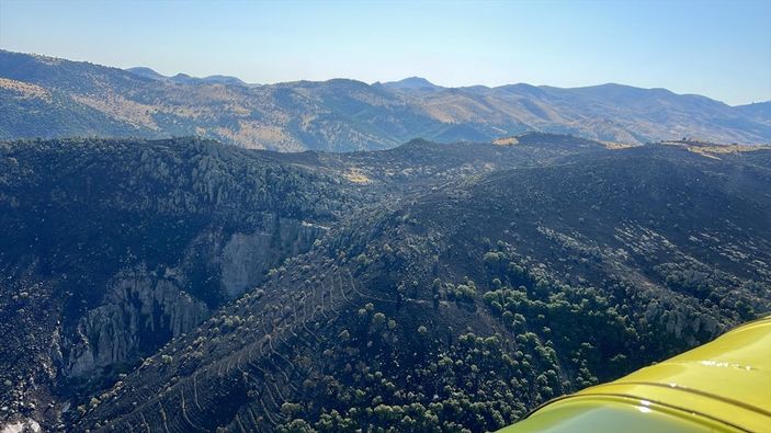Bodur ağaçlık alanların bulunduğu bölgedeki yangın, ekiplerin havadan ve karadan müdahalesiyle kontrol altına alındı.