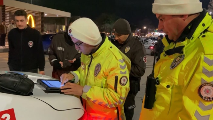 Uygulamalar çerçevesinde gece yarısı bir tesiste denetim yapan bölge trafik ekipleri tesisten çıkmak isteyen 68 EA 708 plakalı otomobili durdurdu.