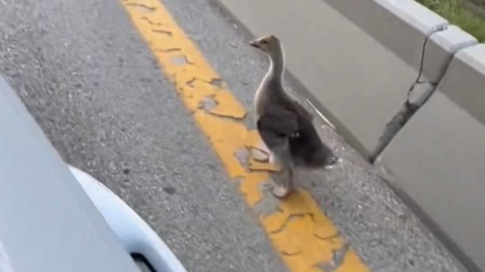 Ankara'da çevre yoluna çıkan bir ördek, sürücülerin dikkati ve trafik polislerinin zamanında müdahalesiyle ezilmekten son anda kurtarıldı.
