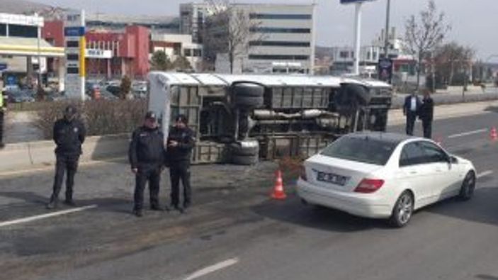 Ankara’nın Mamak ilçesinde kontrolden çıkan midibüs devrildi, 1 kişi yaralandı.