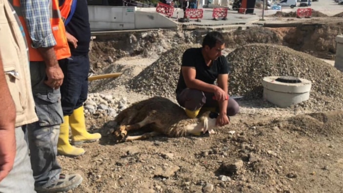 Olayın ardından inşaat çalışmasını yürüten özel firma, can ve mal kaybı yaşanmaması nedeniyle kurban kesti.