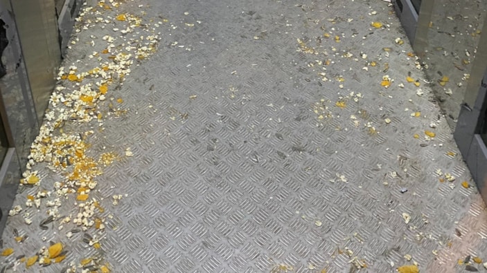 Etimesgut'ta bulunan bir üst geçidin asansöründe patlamış mısır, cips ve çekirdek olduğu görüntülendi.