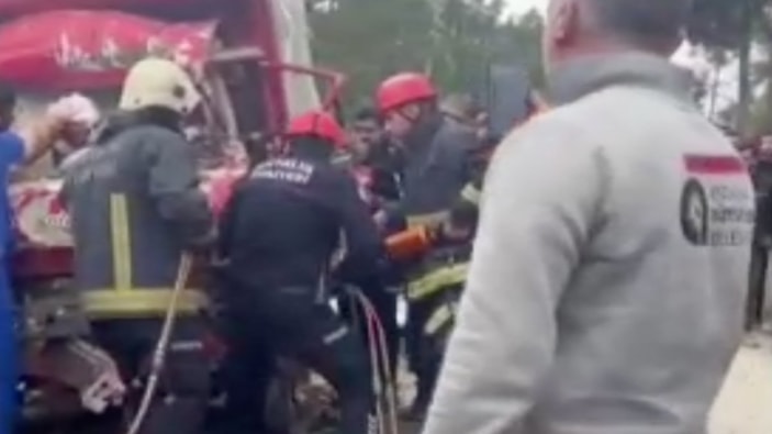 Çarpmanın etkisiyle kamyonda sıkışan sürücü, Antalya Büyükşehir Belediyesi itfaiye ekiplerinin yaklaşık yarım saat süren çalışması sonucu çıkarıldı.