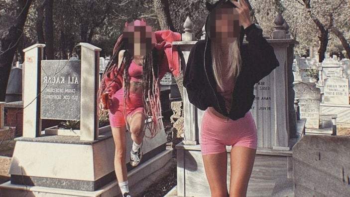Antalya'da mezarlıkta yaptıkları paylaşımla tepki çektiler: Yurtdışına çıkmışlar