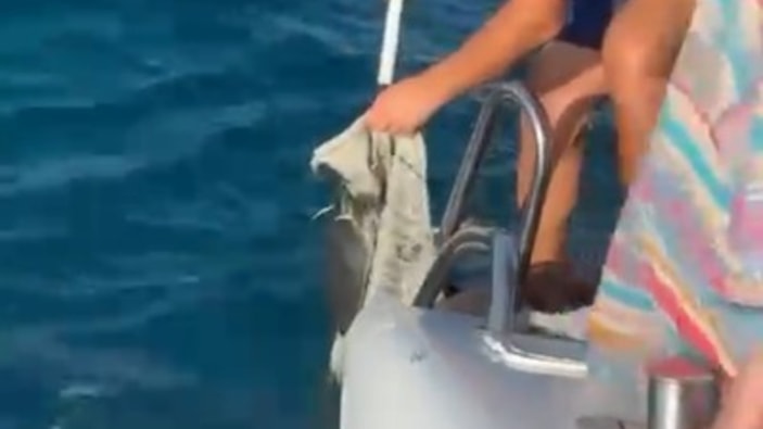 Kurtarma anları balıkçılar tarafından cep telefonu kamerasıyla kaydedildi.