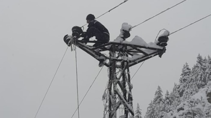 Bir yandan karla kapanan yollar açık tutulmaya çalışılırken, bir yandan da elektrik hatlarına zarar veren ağaçların temizlenmesi için uğraş veriliyor.