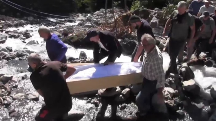Köylülerin cenazeyi taşırken yaşadığı güçlükler kameraya yansıdı. Görüntülerde, cenazenin dere içinde taşınırken zaman zaman düşme tehlikesiyle karşı karşıya kaldığı görüldü.