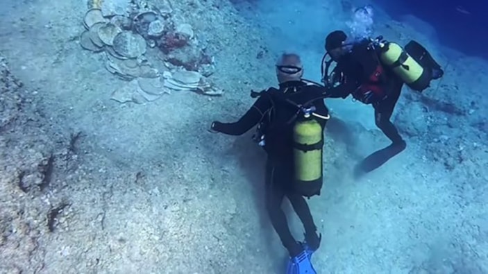 Kültür ve Turizm Bakanı Mehmet Nuri Ersoy, Antalya Adrasan açıklarında 40 metre derinlikteki Seramik Batığı'na dalarak kazı çalışmalarını inceledi.