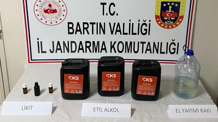 Bartın İl Jandarma Komutanlığı ekipleri tarafından Kumluca beldesinde gerçekleştirilen operasyonda, 15 litre etil alkol, 2 litre el yapımı rakı, 3 adet alkol yapımında kullanılan likit ele geçirildi.