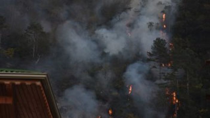 Bartın'ın İnkum beldesinde ormanlık alanda çıkan yangına itfaiye ekiplerinin müdahalesi devam ediyor. Tebir amaçlı 7 ev boşaltıldı.
