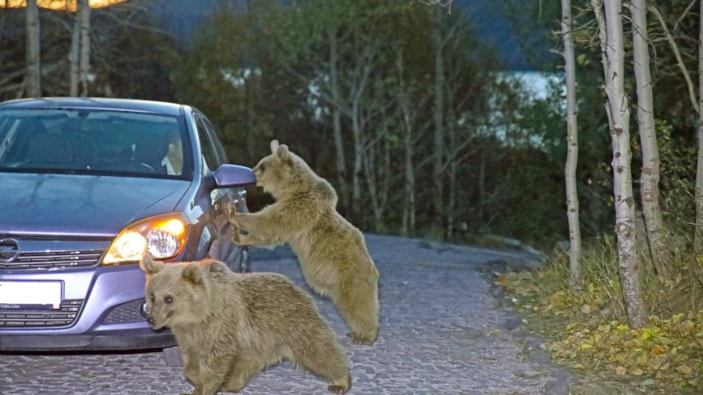 Bitlis'te aç kalan ayılar yiyecek için araçlara saldırıyor