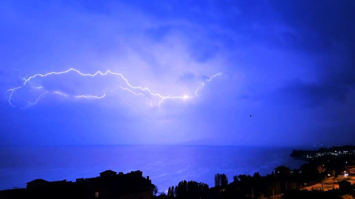Şimşek görüntüleri hem korkuttu hem kartpostallık görüntüsüyle hayran bıraktı.