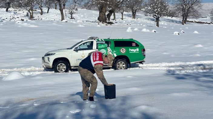 Yaban hayvanlarının bu dönemde yiyecek sıkıntısı yaşadığını belirten ekipler, yaban hayvanlarının hayatlarını sürdürmeleri için yaşam alanlarına yem bıraktıklarını belirtti.