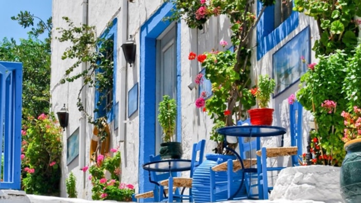 Mavi pencereli beyaz evlerin vazgeçilmezi ise bahçesine dikilen begonvilleri, fesleğeni ve kapı önüne gömülen nazar boncuğu oluyor.