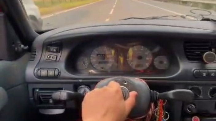B.E., otomobiliyle bir süre direksiyonsuz ilerlerken, o anları ‘Herkesin telefonla yaptığı akımı ben direksiyonla yapınca sen de şaşırdın değil mi?’ notuyla sosyal medya hesabında paylaştı.