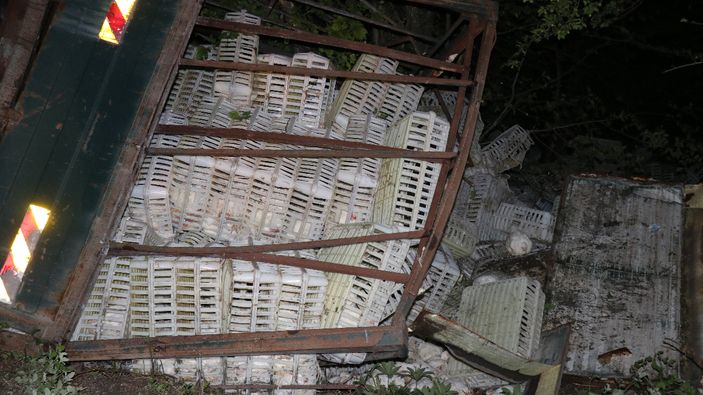 Bolu'da tavuk yüklü kamyon uçuruma devrildi: Yüzlerce tavuk telef oldu
