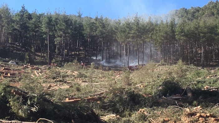 Ağaç kesim sahasına yakın ormanlık alanda henüz bilinmeyen bir nedenle çıkan yangın sonrası 112 Acil Çağrı Merkezine ihbarda bulunuldu.