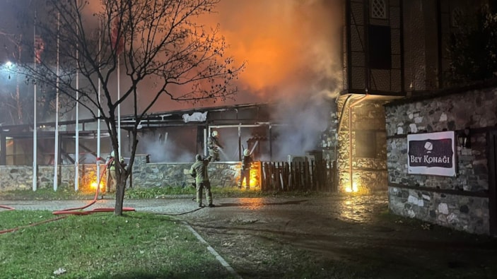 Bursa'da 2 katlı otelin çatısında yangın: Alevler geceyi aydınlattı