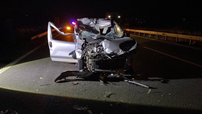 Bursa-Ankara karayolu üzeri Kozluören Mahallesi kavşağı mevkiinde saat 22.30 sıralarında, Bursa'dan İnegöl'e seyir halinde olan Aykut G. (31) yönetimindeki 16 KMZ 43 plakalı hafif ticari araç, sürücüsünün kontrolünden çıkarak önünde seyreden sürücü İsmail K. (31) yönetimindeki 01 AOR 369 tomruk yüklü tıra arkadan çarptı.